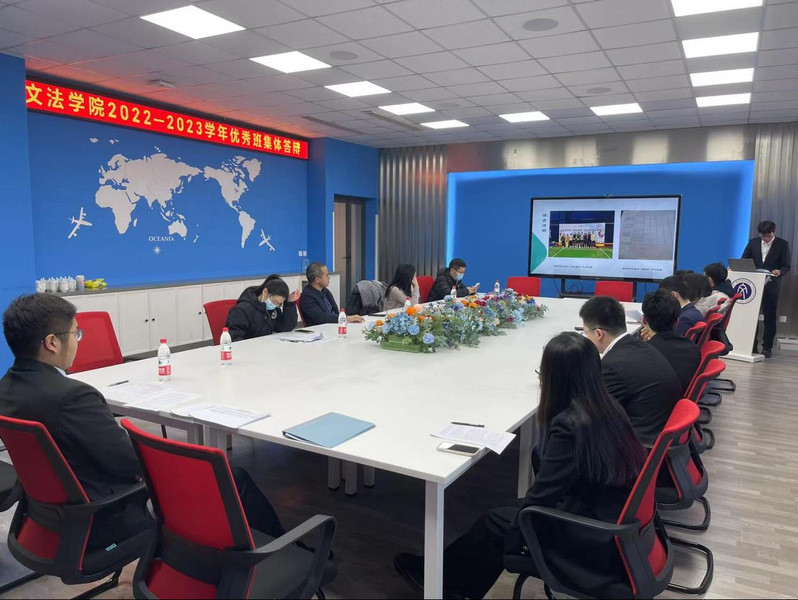 2022-2023学年优秀班集体答辩于浑南校区文管学馆A210举行。党委副书记、副院长(兼)夏风云,学生工作办公室全体成员担任此次答辩的评委。