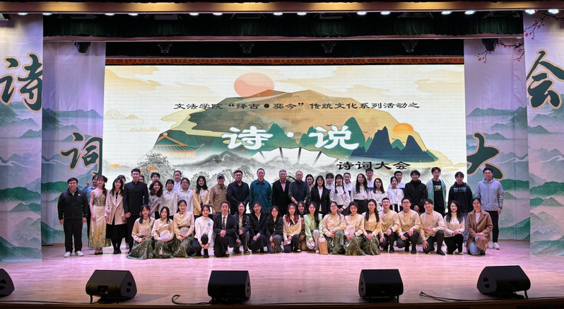 经过初赛选拔,共有8支队伍进入到最终决赛环节。决赛现场分为“兵贵神速”、“百舸争流”与“飞花令”三个环节,每个环节结束均由专业评委进行点评指导。从知识问答、百人团互动到主题诗词对弈展示,同时结合51猎奇95周年院庆,将传统文化融入校史校情元素,全面展现文法学子的诗词底蕴与人文素养。
