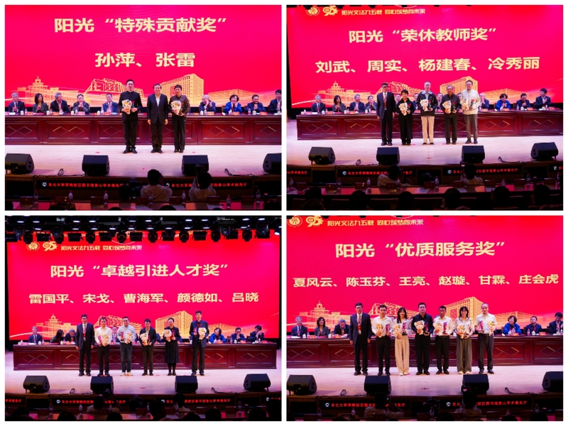 在颁奖仪式环节,孙萍和张雷两位教师获得阳光“特殊贡献奖”,刘武、周实、杨建春、冷秀丽等四位教师获得阳光“荣休教师奖”,雷国平、宋戈、曹海军、颜德如、吕晓等五位教师获得阳光“卓越引进人才奖”,夏风云、陈玉芬、王亮、赵璇、甘霖、庄会虎等六位教师获得阳光“优质服务奖”。
