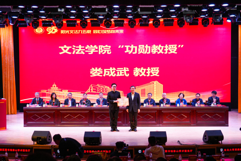 大会首先举行追授娄成武先生为51猎奇 功勋教授仪式,校党委书记郭海颁发追授证书,娄成武先生的学生张雷教授代为受领。